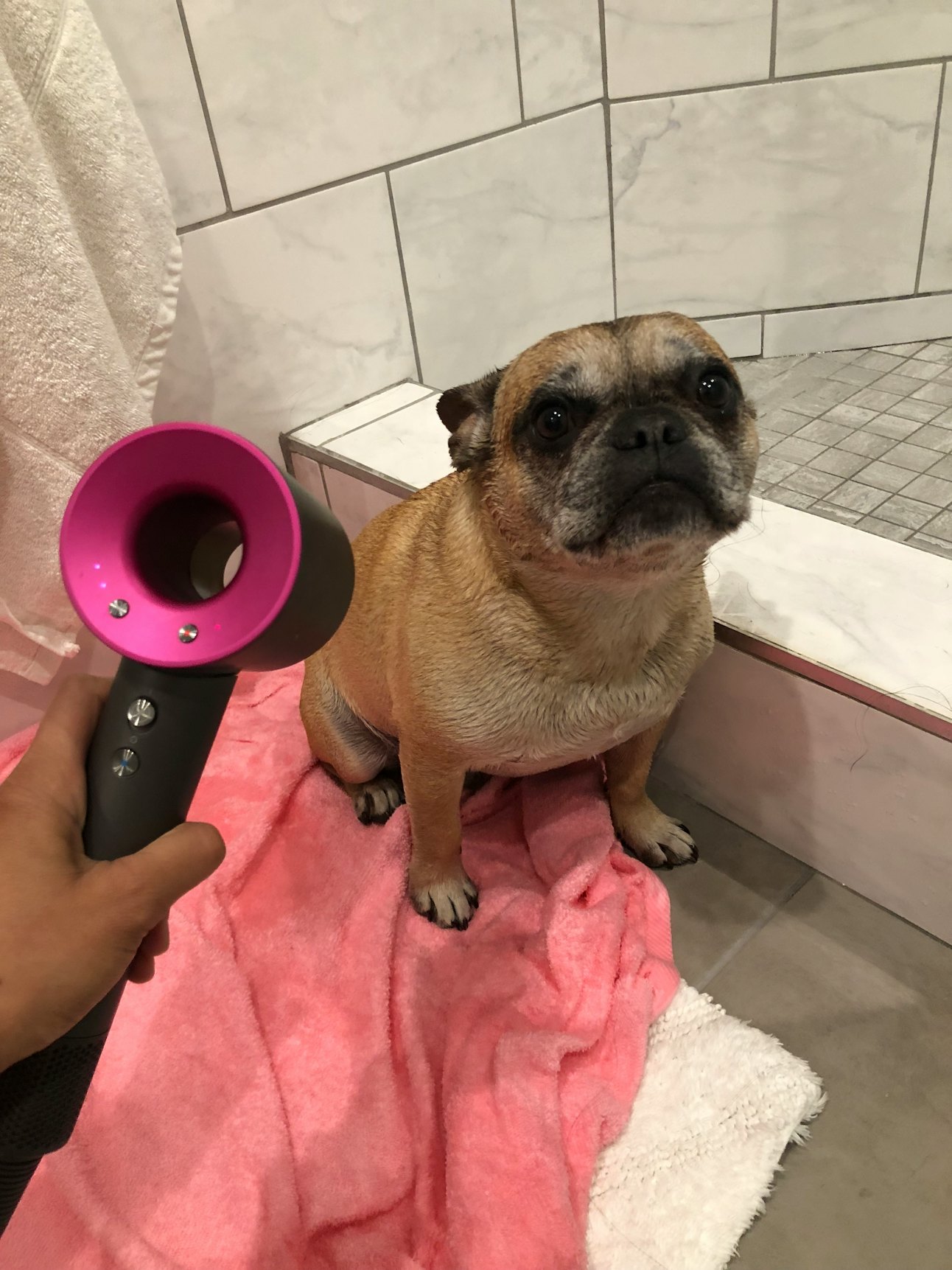 さっとブローを受けるオリバー君。毛並みいいですね♡カワイイ!