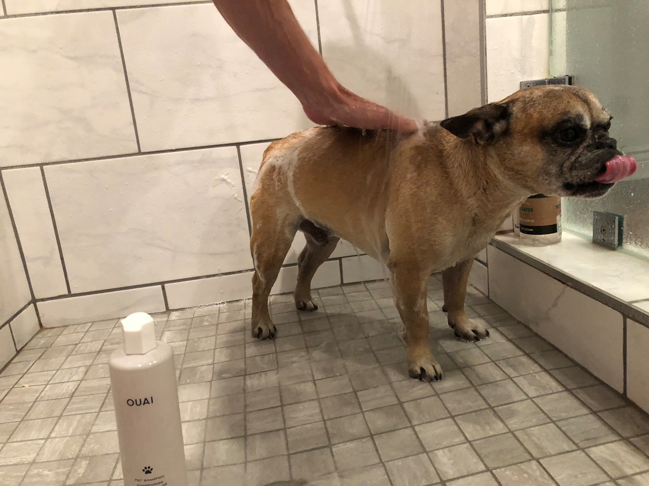 ここでご紹介したいのがBUSTLEのサラ・タンさん!彼女は自分のワンちゃんオリバー・ジェームズ君をOUAIでシャンプーをしてその効き目を検証しているのでちょとみてみましょう!