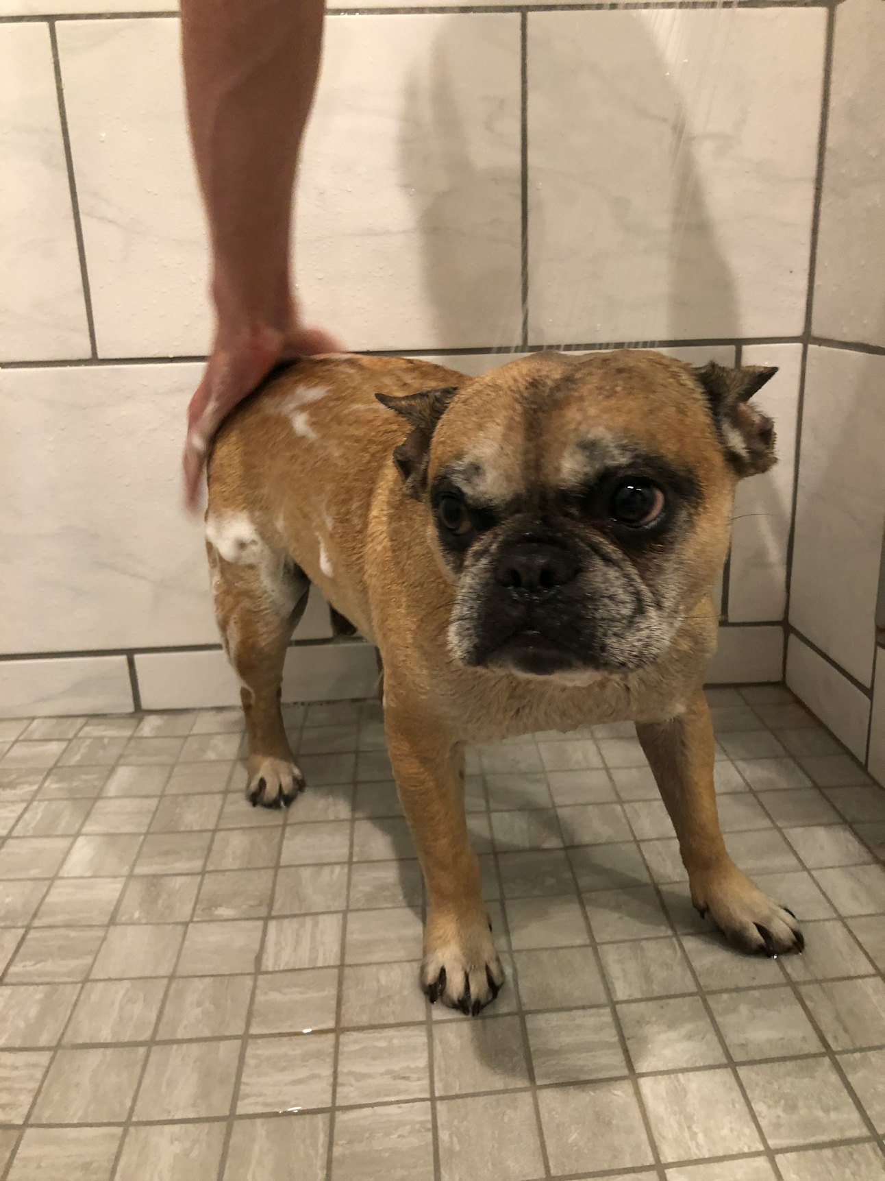 オリバー・ジェームズ君はあまりお風呂が得意でない。